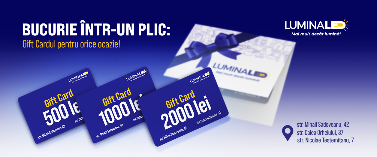 Alege simplitatea și utilitatea cu Gift Cardul LuminaLED – disponibil în 3 variante: