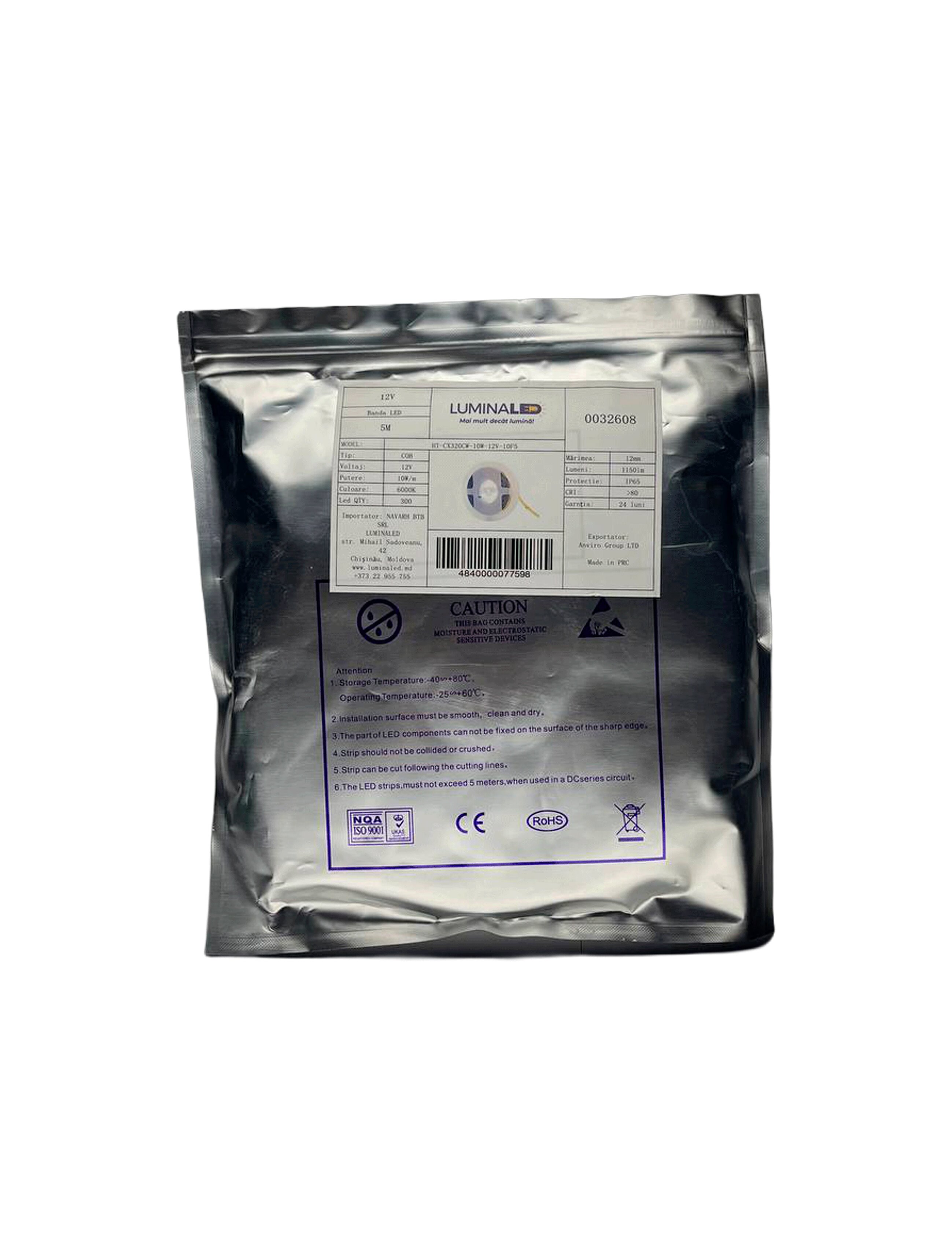 Светодиодная лента (LED) COB 10W 12V (320chips/m) IP65 6000K 5M LuminaLED